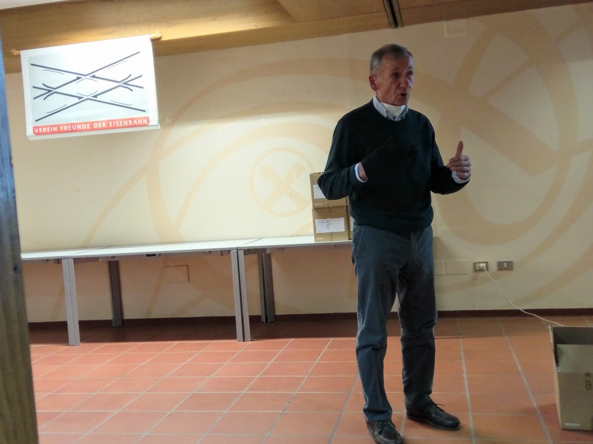 Zu diesem Anlass ist eine Neuauflage der Broschüre "Zug um Zug" erschienen. Der Präsident dankte der Südtiroler Transportstrukturen AG für die Finanzierung des Druckes. Eine Neuauflage war nötig, weil sich in der Zwischenzeit doch viel getan hat. Der Teil mit den Fernfahrten ist z.B. gegenüber der ersten Fassung stark erweitert, denn jedes Jahr wurde eine durchgeführt, nur 2020 ist die für Ecuador geplante wegen der Pandemie ausgefallen. Der Präsident geriet beim Blättern etwas ins Schwärmen, er zeigte sich stolz über die vielen Initiativen und erinnerte unter anderem an die abenteuerliche Aktion der Überführung der Waggons der Rhätischen Bahn nach Staben via Tieflader, wobei sogar die Luft der Reifen ausgelassen werden musste, um durch die Straßentunnels am Reschen zu kommen (der Ofenpass hatte zu enge Kurvenradien!).
