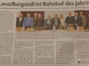 Nun wurde klar, dass die Gastgebergemeinde Burgstall auch die Auszeichnung für den Bahnhof "Lana-Burgstall" bekommen sollte. Besonders hervorsticht bei Burgstall-Lana die schön renovierte und gut bewirtschaftete Bahnhofsbar "kam 23", weiters die Integration der historischen Bahnbrücke und Elektro-Lokomotive der ehemaligen Lokalbahn Burgstall-Lana, weiters die gute Anbindung an die umliegenden Dörfer und die Radwege nach Lana und Meran/Bozen. Arthur Scheidle nahm die Gelegenheit wahr, auch auf Negativbeispiele hinzuweisen, wie z.B. die schlecht geführte Bar am Bahnhof Untermais oder die skandalöse Ruine des ehemaligen Bahnbetriebswerkes in Meran.