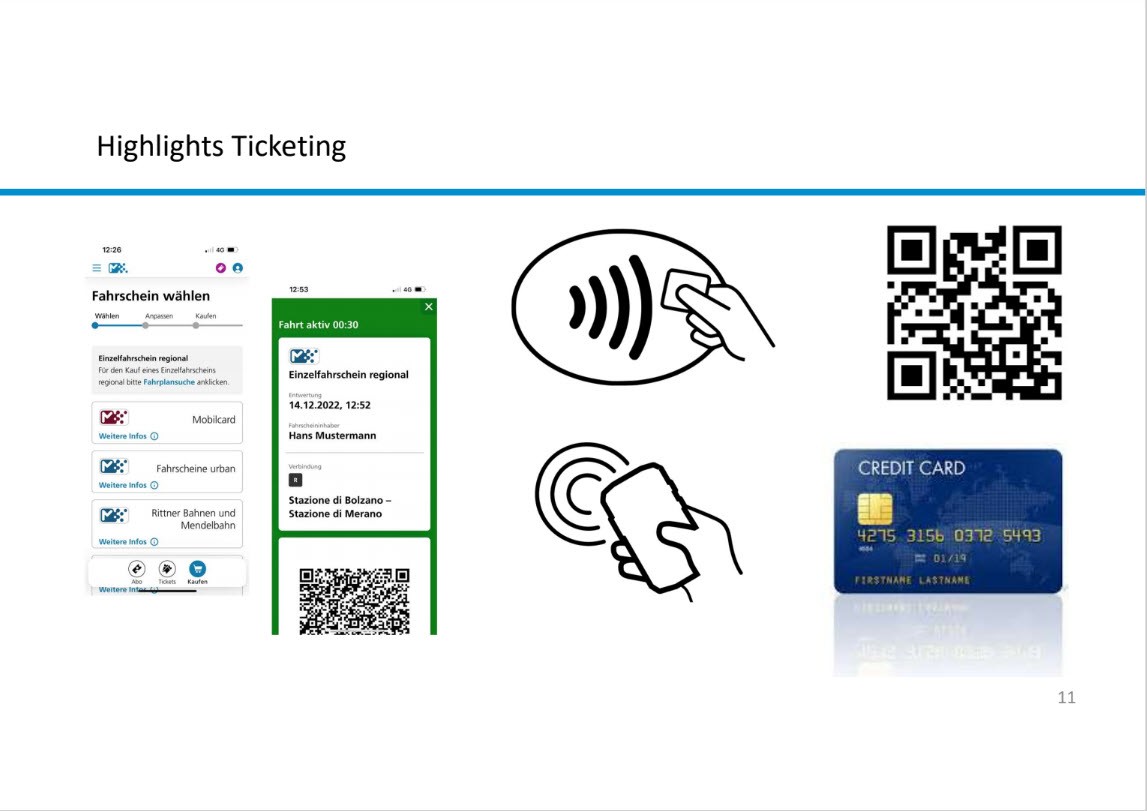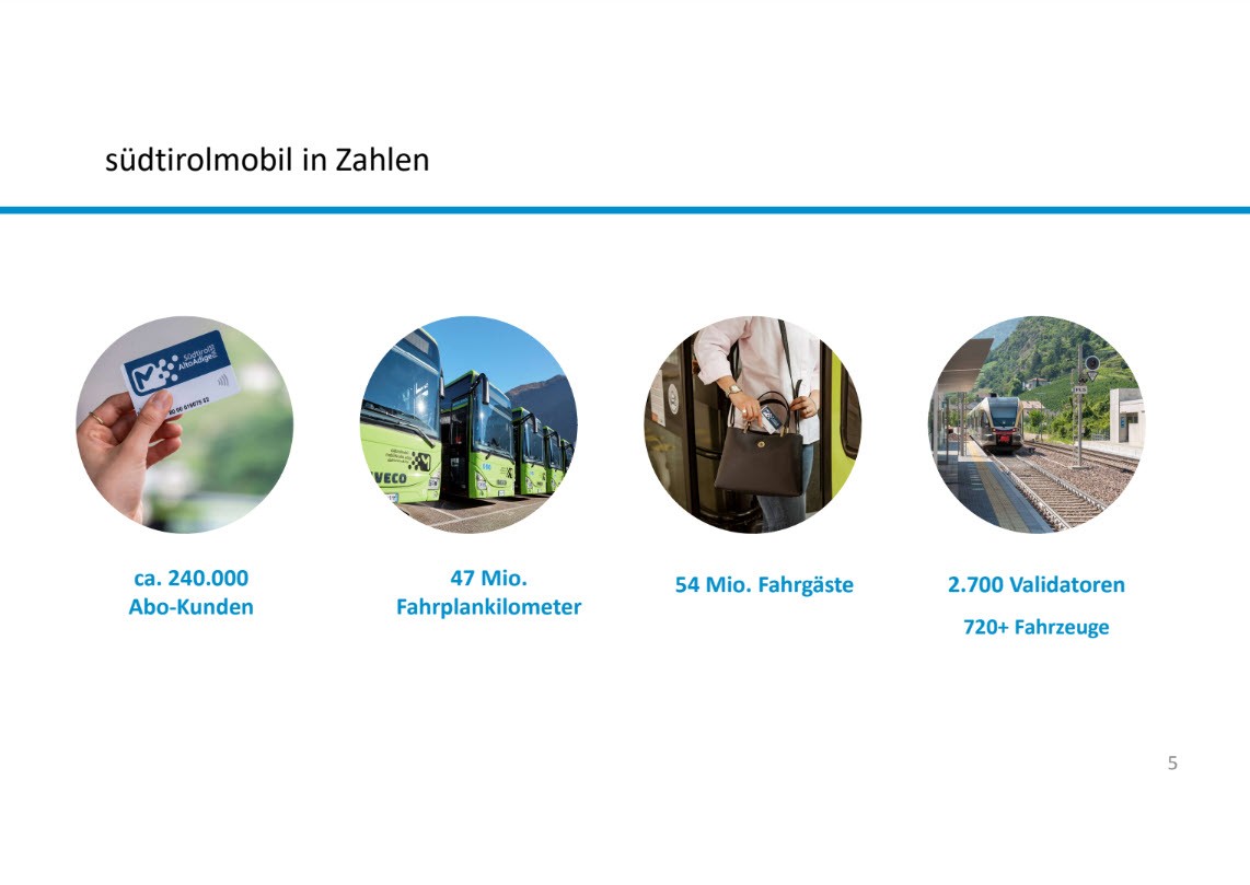 Schon seit Jahren arbeitet die STA intensiv an der digitalen Integration der Betriebsdaten aller Akteure im Mobilitätsbereich in Südtirol und ist nun an einem entscheidenden Punkt angelangt: alle Daten werden jetzt in Echtzeit an einem zentralen Ort zusammengeführt und dienen zur Steuerung und Überwachung des Betriebs und der Fahrgastinformation. Für den Fahrgast am sichtbarsten wird das neue Ticketsystem sein, das heuer Schritt für Schritt "ausgerollt" wird. Die Fahrkarten mit Magnetstreifen haben nach 30 Jahren ausgedient, es kommt ein gänzlich neues digitales System. In der Architektur ist man da unter den Spitzenreitern in Europa. Lassen wir die Zahlen sprechen: ca. 240.000 Südtiroler besitzen ein Abo (die Hälfte der Bevölkerung!), 47 Millionen Fahrplankilometer an ÖPNV weren jährlich angeobeten, 54 Mio Fahrgäste nehmen davon Gebrauch, mehr als 720 Fahrzeuge (Busse und Züge) sind im Einsatz und es gibt nicht weniger als 2.700 Kontrollpunkte (Entwerter). Ein großer Erfolg ist seit 2020 Website und App "südtirolmobil" mit Anzeigen in Echtzeit, Auslastungsprognosen und der Möglichkeit, sich spezielle Infos (z.B. über Störungen auf der Stammlinie) zuschicken lassen zu können. Die Variante "Linking Alps" gibt zudem Auskunft über Verbindungen im Alpenraum über Südtirol hinaus. Das neue Ticketsystem, welches die Fa. Scheidt&Bachmann aus Deutschland implementiert, wird in Zukunft viele neue Möglichkeiten wie neue Bezahlformen und umfassende Information für den Fahrgast beiten. So sind z.B: Fahrscheine neu nicht nur über Automaten und Verkaufsstellen, sondern auch über die App zu erhalten. In Zukunft werden auch Zusatzleistunge wie die Miete von Fahrradboxen über die App abrechenbar sein. Alle Ticketautomaten an Standorten und in Bussen werden im Laufe des Jahres mit Geräten der neuesten Technologie ersetzt. Ende 2024 - so Patrick Dejaco - soll das System nach schrittweiser Einführung - in vollem Umfange zur Verfügung stehen.