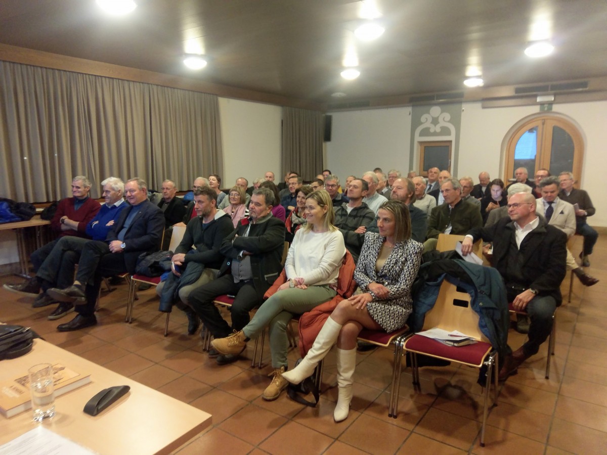 Präsident Dr. Walter Weiss konnte eine stattliche Anzahl von Mitgliedern begrüßen. Entschuldigen ließ sich der Landeshauptmann Arno Kompatscher (war in Wien bei der Angelobung der Präsidenten van der Bellen), an seiner Stelle referierte der Direktor des Ressorts Mobiliät, Martin Vallazza. Besondere Grüße entbot der Präsident den Vorstandsmitgliedern und den freiwilligen Helfern. Unter den Gästen befand sich auch HGV-Präsident Manfred Pinzger, Bezirkspräsident Luis Kröll und der Datenexperte Bernd Geppert aus Frankfurt/Main. Der Bürgermeister von Burgstall Othmar Unterkofler als Gastgeber nahm mit Vizebürgermeisterin Helene Amort und Referentin Tanja Nart ebenfalls an der Sitzung teil. Der Präsident gedachte auch der Mitglieder, die im letzten Jahr verstorben sind.
