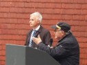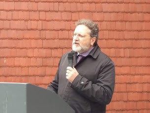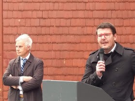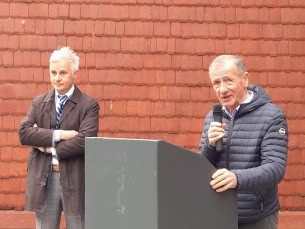 Bürgermeister Thomas Klapfer ging abwechselnd in beiden Landesssprachen auf die Bedeutung der Eisenbahn für Franzensfeste ein. Franzensfeste sei "ein Synonym für Eisenbahn schlechthin", da der Ort vor 150 Jahren als Bahnknotenpunkt entstanden sei. Es gab ein goldenes Zeitalter, wo es mehr Arbeitsplätze als Einwohner gab. Mit dem EU-Beitritt Österreichs 1995, dem Aufheben der Grenzen in Europa nach dem Schengenabkommen und die Automatisierung der Bahn hatten allerdings die Folge, dass die meisten Arbeitsplätze bei Bahn und Zoll verloren gingen und große Teile des Bahnhofsgeländes seitdem brachliegen. Der Niedergang des Güterverkehrs auf der Schiene und die zunehmende Verlagerung des Güterverkehrs auf die Autobahn in Südtirol waren auch Gründe dafür, das sei noch hinzugefügt. Über die weitere Zukunft des Bahnhofs Franzensfeste sprach der Bürgermeister dann noch etwas später (siehe unten).