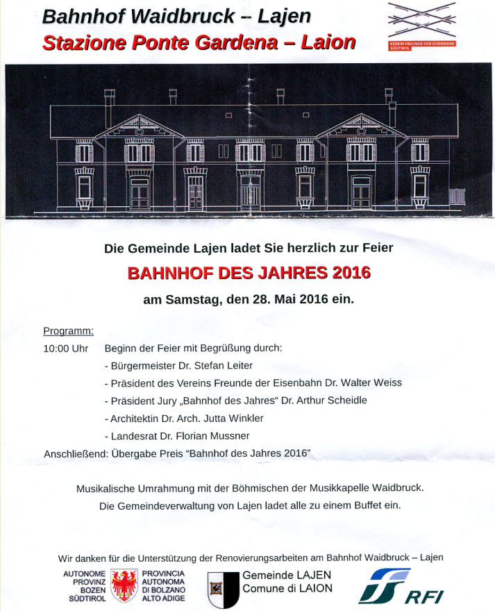 Bahnhof des Jahres: WAIDBRUCK-LAJEN - gelungene Feier