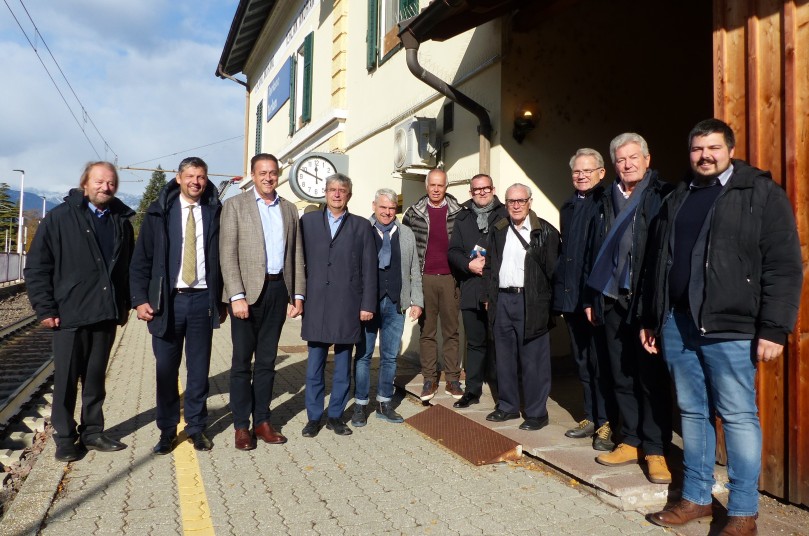 Die Bürgermeister von Leifers, Auer, Kurtinig und Kurtatsch, Christian Bianchi, Martin Feichter, Manfred Mayr und Oswald Schiefer wiesen auf die Notwendigkeit von zusätzlichen Zügen auf der Brennerstrecke von Bozen nach Salurn am Vormittag hin.
