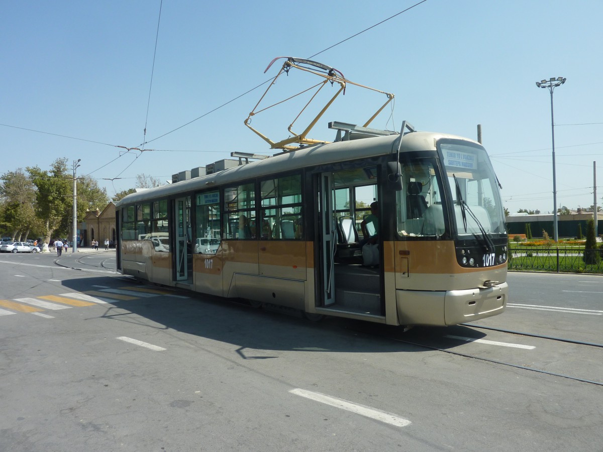 Taschkent hat bis vor kurzem ein dichtes Straßenbahnnetz, sogar mit neueren Niederflurtrambahnen. Es wurde aber 2016 beschlossen, ratzeputz das ganze Netz mit über 90 km stillzulegen. Alle Gleise wurden entfernt und nun fahren Mercedes-Busse. In Samarkand allerdings ist man dabei die Straßenbahn wieder einzuführen. Bald soll die gesamte Line vom Bahnhof bis zum Basar befahren werden.