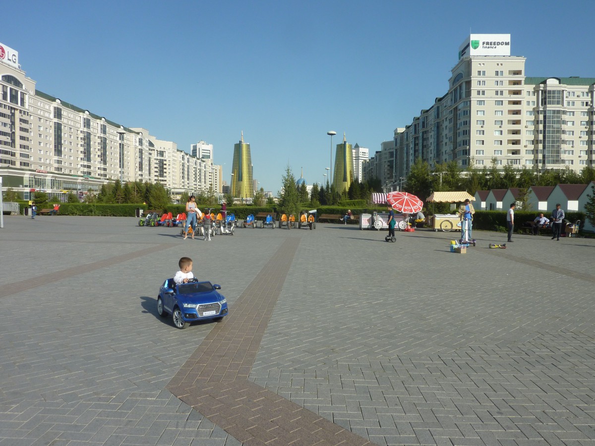 Wir haben die beiden Bahnhöfe Astanas besucht, den alten und den neuen. Der alte stammt noch aus der Sowjetzeit, ist aber renoviert und an sich schon imposant, hat aber nur 3 Bahnsteiggleise. Dort spielt sich der meiste Verkehr ab. Der neue ist Teil des Hauptstadtprojekts, gerade fertiggeworden und ist wie alles andere ein Bau der Superlative, geplant von einem rennomierten Architekturbüro. Nur Züge und Passagiere haben wir nur wenige dort gesehen. Aber das wird sich vielleicht noch entwickeln. Auch hat diese Großstadt keine Metro, eine Stadtbahn auf der Oberfläche ist allerdings projektiert.