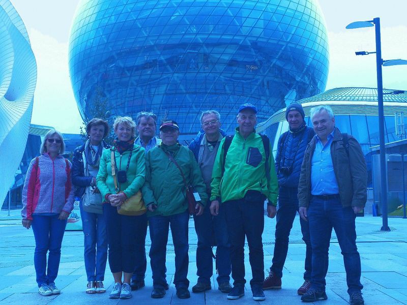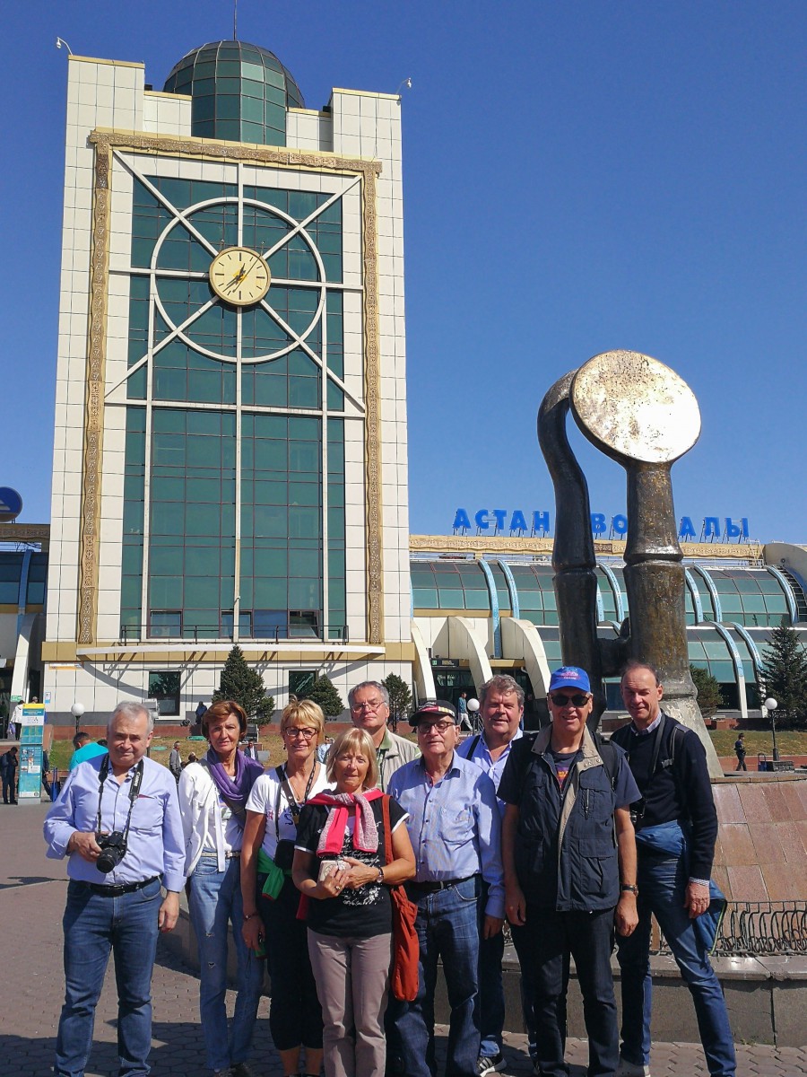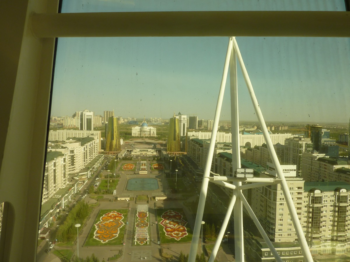 Astana ist eine sehr junge Stadt, in Mitten der Steppe auf dem Reisbrett entstanden und immer weiterwachsend. Viele berühmte Architekten entwarfen kunstvolle Bauten. Alles ist auf Superlative ausgerichtet. Geld scheint dabei keine Rolle zu spielen, denn Gas und Rohstoffe sind reichlich vorhanden. Stellvertretend für viele dieser Prunkbauten sei der Bajterek-Turm im Zentrum erwähnt. Von der Aussichtskanzel aus hat man eine tolle Rundsicht bis zum Stadtrand, wo die Steppe anfängt, und wer will, kann sich anstehen und seine Hand in den Abguss der Präsidentenhand von Nursultan Nasarbajev legen. Wird hier die Stadt der Zukunft vorweggenommen und ist das bloß Größenwahn? Dieser Aspekt wurde in der Gruppe durchaus kontrovers diskutiert.