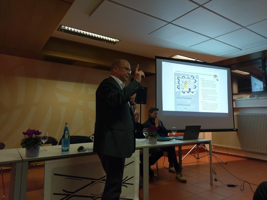 Auf sehr schwungvolle Weise und rhetorisch gekonnt gab Herr Geppert nun eine Reihe von Impulsen. Er nahm Bezug auf sein Referat vor 2 Jahren. Was hat sich inzwischen verändert? Apps und Daten-Plattformen nehmen zu, stillgelegte Bahnen werden reaktiviert, das Kundenkontaktmanagement wird ausgebaut, in Südtirol ist das Verkehrsangebot erweitert worden, das IDM hat eine neue Daten-Plattform, Tourismusregionen haben sich neu organisiert usw.