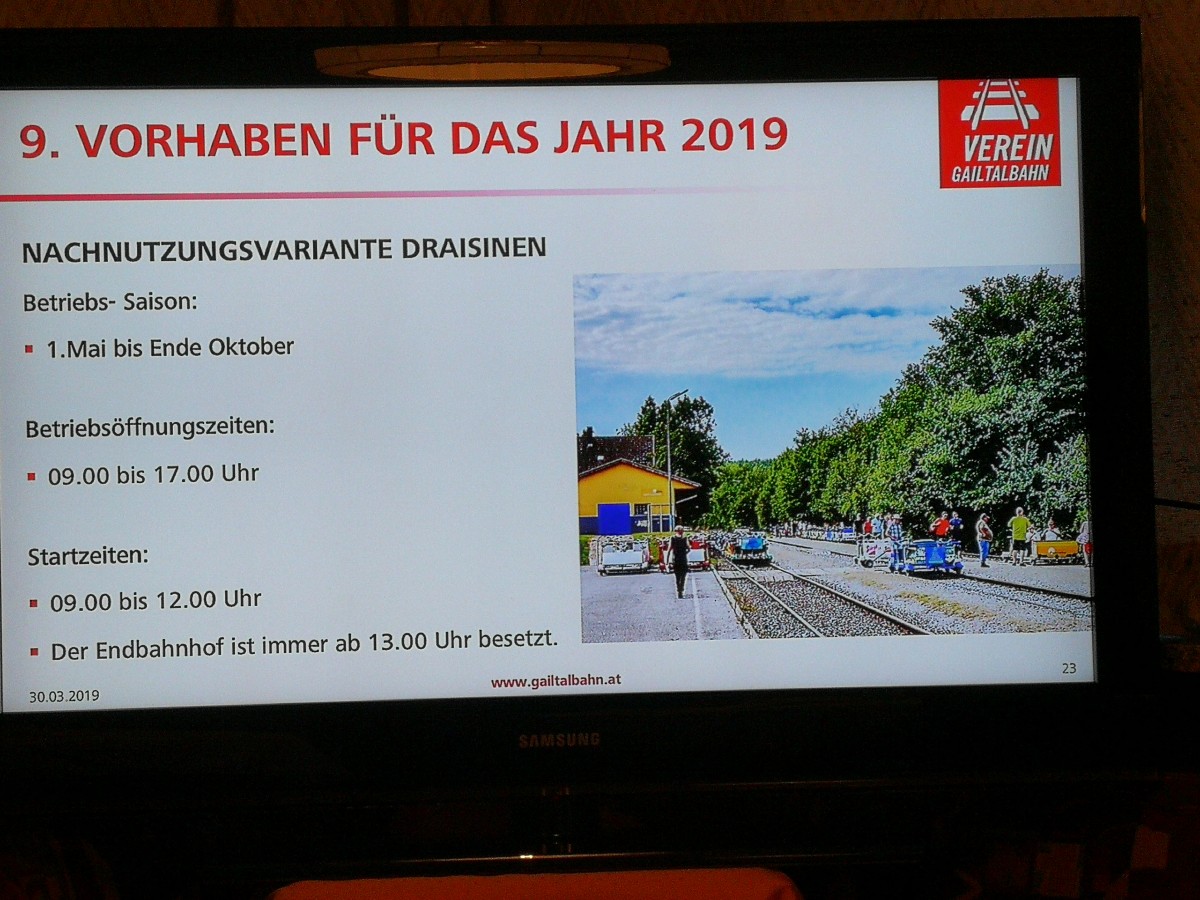Bei der Vollversammlung am 30. März 2019, bei der Walter Weiss teilgenommen hat, wurden die Vorhaben für dass Jahr 2019 dargelegt und die Hoffnung ausgesprochen, dass an Wochenenden bald wieder Züge verkehren.