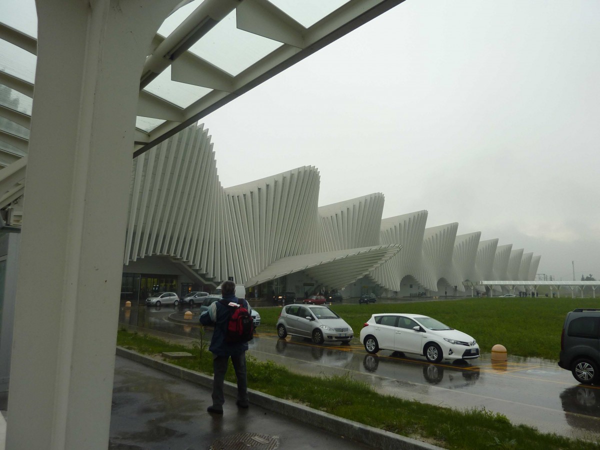 Mit dem italo-Hochgeschwindigkeitszug ging es zum neuen Bahnhof Mediopadana nahe Reggio Emilia, bekannt durch seine geschwungenen fächerartigen Formen des Stararchitekten Calatrava. Es fehlt allerdings noch an einer effizienten Anbindung der Städte im Umkreis.