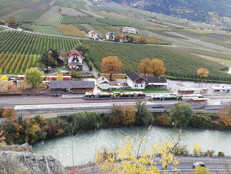Seit 2020 hält die Vinschger Bahn direkt am Erlebnisbahnhof in Staben.
