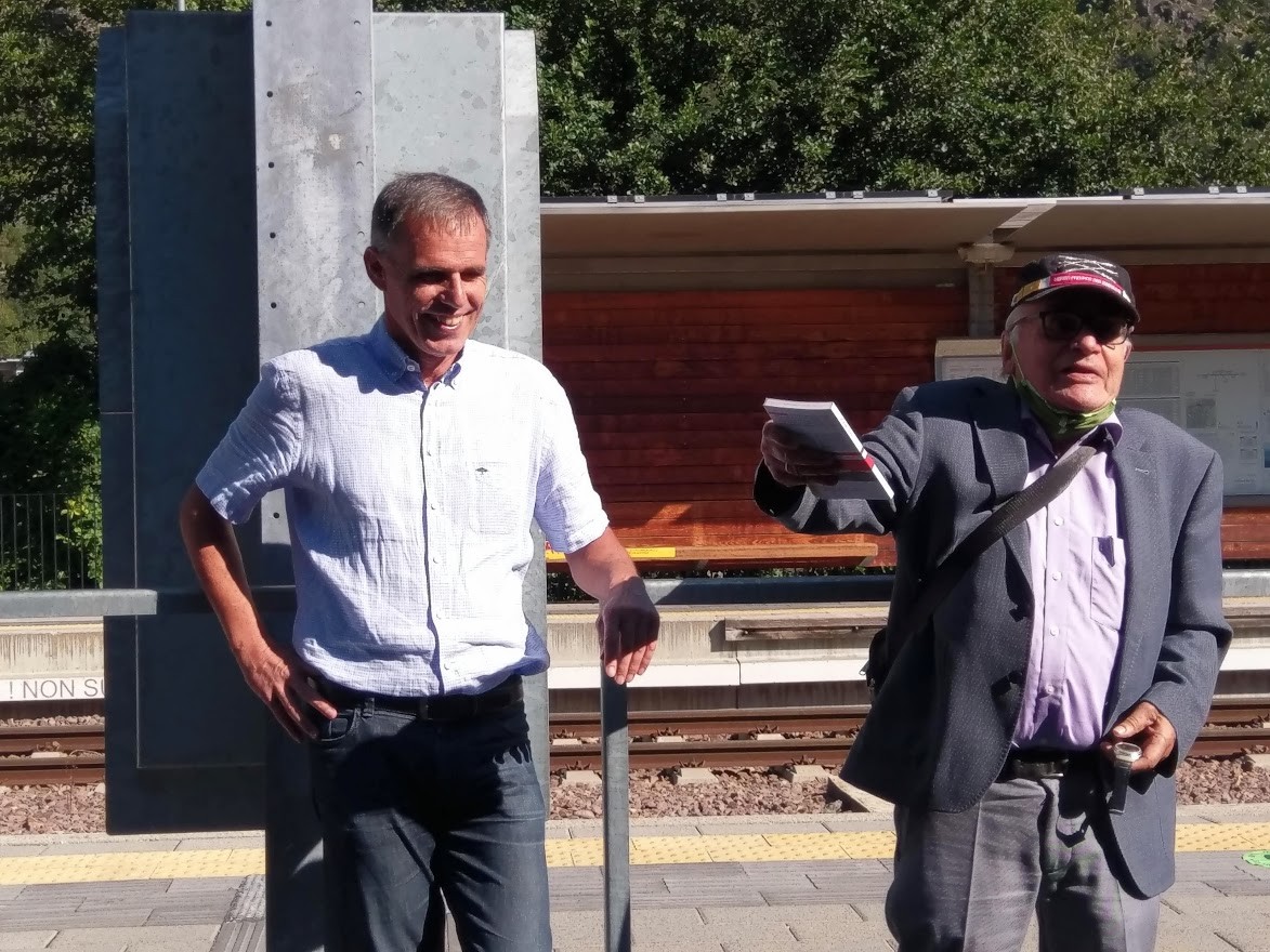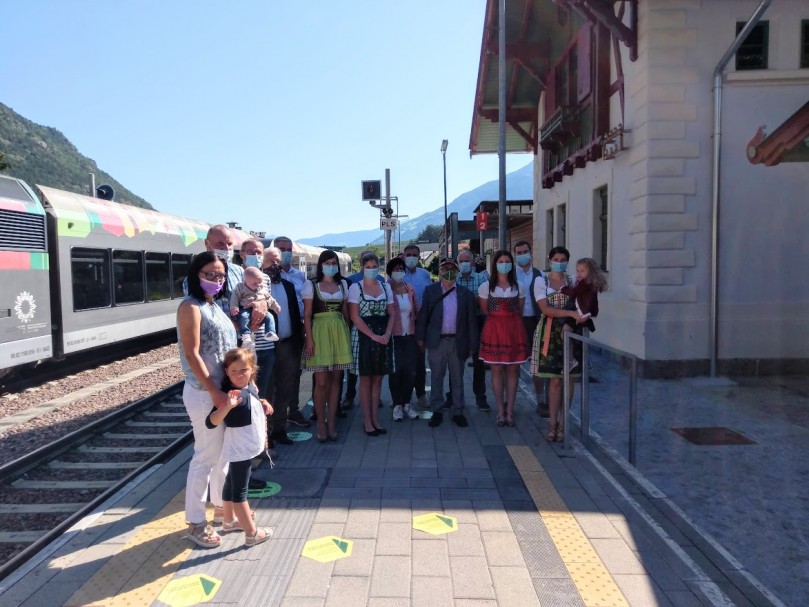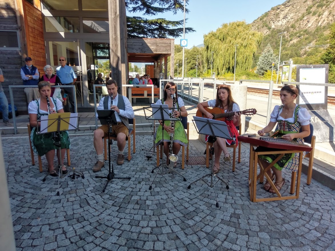 Auf Einladung der Gemeinde Latsch gab es anschließend einen Umtrunk am Bahnsteig, wobei die angesprochenen Themen noch im persönlichen Austausch vertieft werden konnten, weiterhin untermalt durch die lieblichen Klänge der Musikgruppe "Klagihabazi".