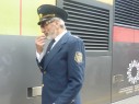 Die "Bahnsteigaufsicht" oblag einem Bahnhofsvorstand in historischer russischer Bahnuniform, ausgerüstet mit einer lauten Signalpfeife.