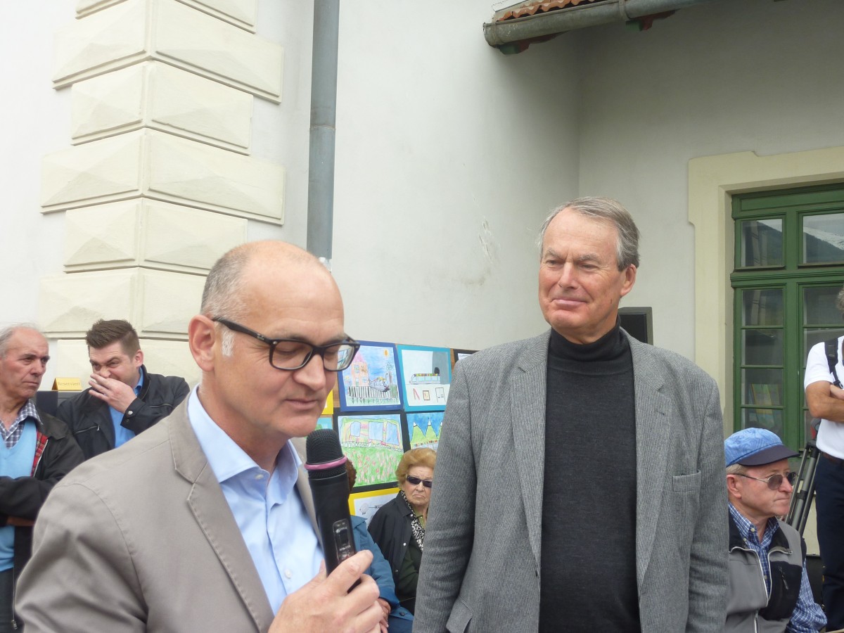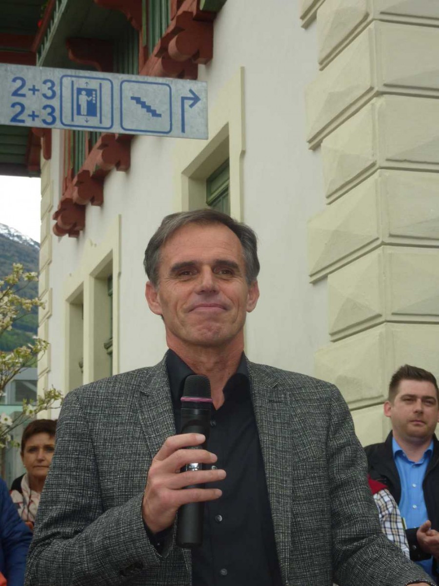 Der für Mobilität zuständige Landesrat Dr. Florian Mussner erwähnte in seinen Grußworten auch das schreckliche Unglück von 2012, dem 9 Menschen zu Opfer gefallen sind. Er verwies auch auf die vielen vorbildlich restaurierten Bahnhöfe. Man werde versuchen, verstärkt auch in anderen Landesteilen die Bahnhöfe zu verschönern und kundengerechter zu gestalten. Er bringe gute Nachrichten für die Vinschgaubahn: Zum einen sei die Elektrifizierung und technische Aufwertung der Strecke eine beschlossene Sache, die Vorbereitungen liefen bereits und auch bei der Finanzierung täten sich neue Möglichkeiten auf, denn es könnte sein, dass die EU sich zu 50% an den 56 Mio Kosten beteilige. Am Montag (4.6.15) werde in Meran anlässlich einer Fachtagung zu "10 Jahre Neue Vinschgerbahn" ein Rahmenvertrag mit einem hohen Vertreter des Infrastrukturbetreibes RFI unterzeichnet, der die Übernahme der Strecke Bozen - Meran und das Inangriffnehmen der Riggertalerschleife in die Wege leiten soll. Vorhaben, die sich auch positiv auf die Vinschgaubahn auswirken werden, vor allem die geplante Beschleunigung der Strecke Meran - Bozen.
