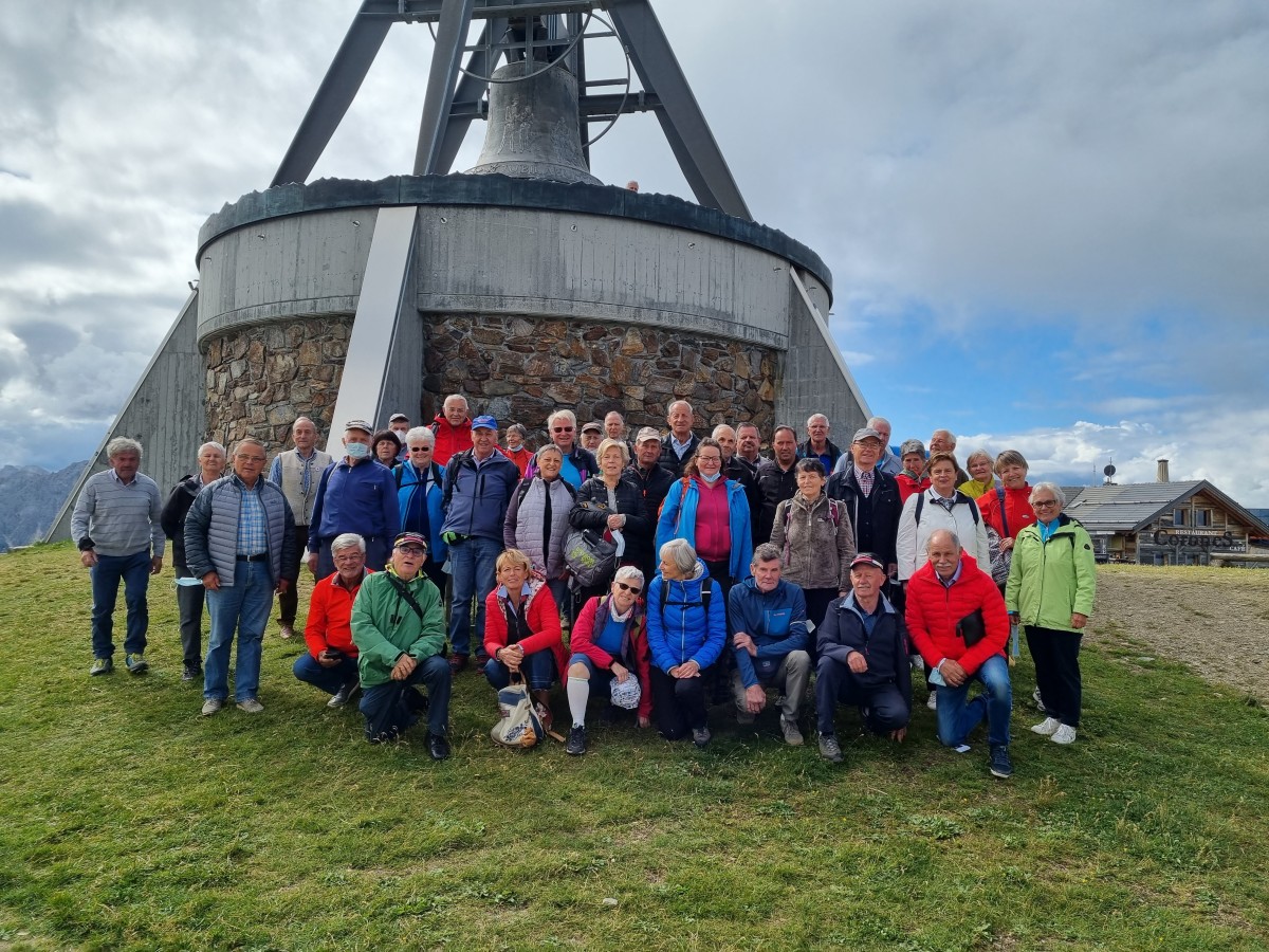 Anschließend bestiegen die Freunde der Eisenbahn die Gondel der Ried/Gipfelbahn, die sie auf den Gipfel der Kronplatzes brachte. Mit viel Freude und Begeisterung genossen sie die wunderbare Aussicht, sahen den „Tandemfliegern“ zu, die sich zum Abflug bzw. zum Aufheben vorbereiteten und schließlich vom Auftrieb erfasst sich in die leere Luft begaben. Dann stand der Besuch des Museums MMM Corones (Messner Mountain Museum) auf dem Programm. Mit großem Interesse folgten sie dabei den Darbietungen dieses Museums, das vor allem dem traditionellen Alpinismus gewidmet ist und auf das Leben von Reinhold Messner verweist, wobei ihnen auch die gelungene Architektur verbunden mit der wunderbaren Aussichtslage besonders ins Auge fiel. Auf dem Weg zum Gipfelrestaurant konnten sie das Schwingen der 18 Tonnen schweren Friedensglocke sehen und den klangvollen Ton derselben vernehmen. Beim anschließenden Mittagessen bot sich die Gelegenheit zum Gedankenaustausch, zum Plaudern und Erzählen, was vor allem zur Förderung der Kameradschaft und Freundschaft zwischen den Mitgliedern beigetragen hat und somit für fröhliche Stimmung sorgte. Nach dem Mittagessen erfolgte der Besuch des Museum „Lumen“, ein 2018 eröffnetes und modernes Museum, das in beeindruckender auf einer Ausstellungsfläche von 1800 m² die Geschichte der Bergfotographie von den Ursprüngen bis zur Gegenwart erzählt. Alle waren beeindruckt von diesen großartigen Darbietungen und freuten sich ganz besonders im „Spiegelsaal“ wobei sie die technischen Auswirkungen der Spiegel erstaunend bewunderten.