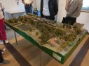 Aber der Raum enthielt eine weitere Überraschung, nämlich die detailgenaue Darstellung des Bahnhofes Spondinig-Prad-Stilfs als fein ausgearbeitetes Modell im Maßstab N mit Zügen aus verschiedenen Epochen auf den Gleisen. Gebastelt hat das Modell Herr Theo Köfl vom Modelleisenbahnclub Schlanders, der die Herausforderungen bei dieser Präzisionsarbeit und Details zur Geschichte der Vinschgaubahn auch gerne erklärte.