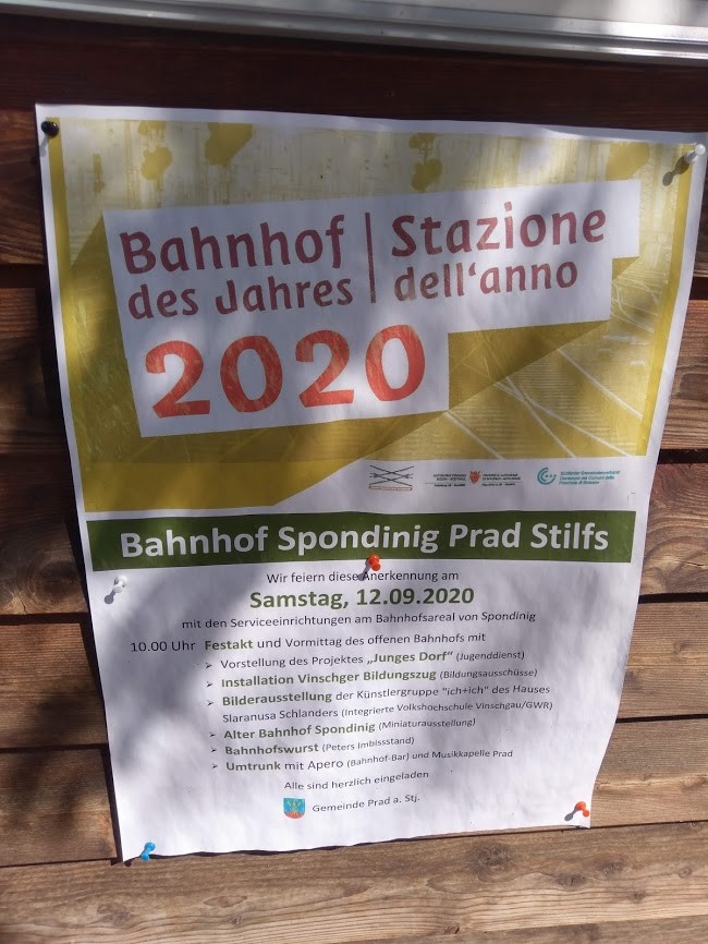 Bei strahlendem Sonnenschein verlieh am 12. September der Verein Freunde der Eisenbahn im Rahmen einer gelungenen Feier am Bahnhof Spondinig-Prad-Stilfs-Stilfs der Gemeinde Prad die Auszeichnung