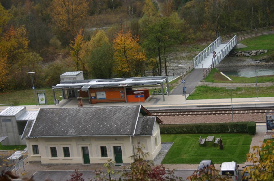 Aber jetzt sind wir sehr stolz auf unseren Bahnhof Spondinig-Prad-Stilfs, denn er diene nicht nur einer umweltbewussten Mobilität, sondern er beherberge in den vielen Räumlichkeiten viele wertvolle Organisationen der Weiterbildung: die Genossenschaft für Weiterbildung und Regionalentwicklung, den Jugenddienst Obervinschgau, die Vinschger Sozialgenossenschaft VISO, die Bezirksservicestelle für die Bildungsausschüsse ("von Reschen bis Kastelbell)", das Informationsbüro für den EU-Interreg-Rat "Terra retica" und den Jugenddienst Obervinschgau.