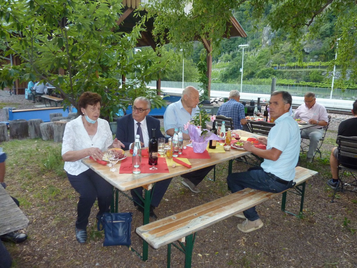 Ein wahrlich schöner Ausklang an einem lauen Sommerabend an festlich geschmückten Tischen im Freigelände am Erlebnisbahnhof Schnalsthal, im etwas außergewöhnlichen Corona-Jahr.