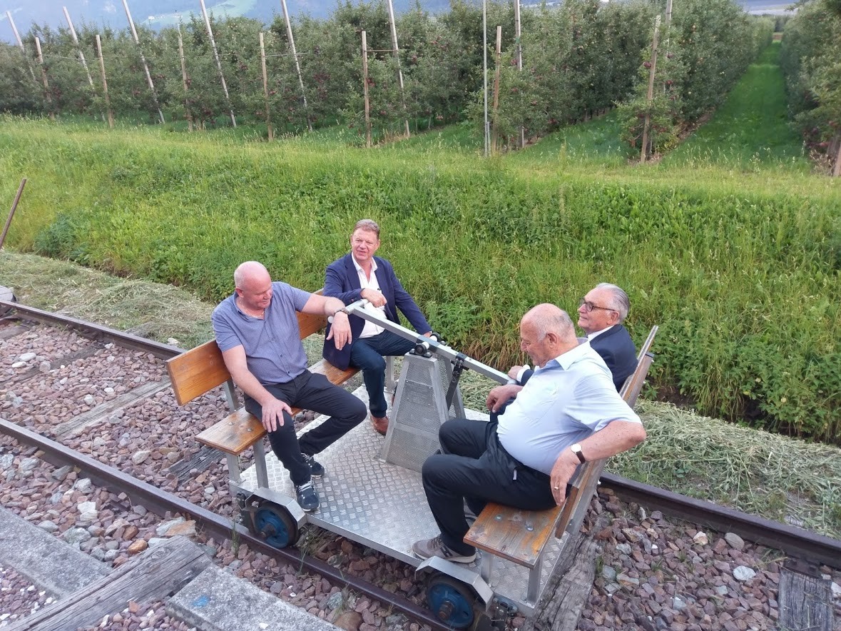 Vizepräsident und Vorstandsmitglied Arthur Scheidle würdigte in seiner Ansprache vor allem die Leistungen des Jubilars als Präsident des Vereins. In zahlreichen Treffen mit den verantwortlichen Politikern und z.B. in Form von "runden Tischen" in den Bezirken werde seit Jahren erfolgreich für die Bahn als wesentlicher Faktor für die notwendige Verkehrswende und als Rückgrat für den öffentlichen Verkehr in Südtirol geworben. Es habe viele erfolgreiche weitere Inititativen gegeben, erwähnt sei stellvertretend die Aktion "Bahnhof des Jahres", bei der gelungene Bahnhofsrevitalisierungen prämiert werden. Dadurch sei ein Anreiz für die Gemeinden entstanden, sich verstärkt um die Revitalisierung der Bahnhöfe in ihrem Bereich zu kümmern.