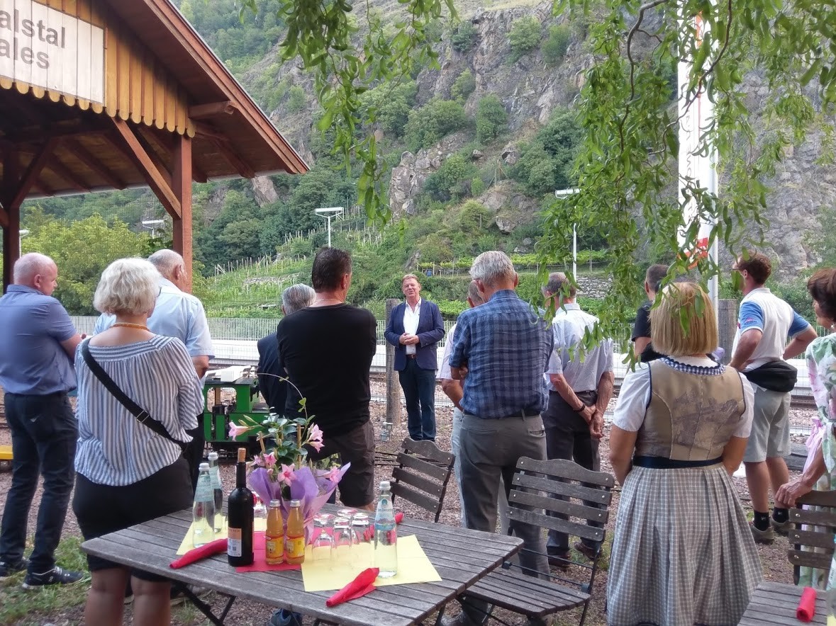 Gekommen waren sie zahlreich, darunter Alt-Landeshauptmann Luis Durnwalder, Alt-Landesrat Richard Theiner, der Bürgermeister von Naturns Andreas Heidegger, dessen Stellvertreter Helmut Müller, die Freiwilligen Mitarbeiter am Erlebnisbahnhof, Mitglieder des Vereinsvorstandes, seine Frau und seine Kinder und eine Reihe von engeren Freunden.