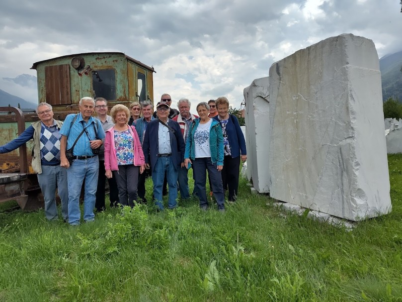 Am Vormittag begleitete uns Herr Roland Lechner. Erfreulicherweise wird ein Teil des Bahnhofsgebäudes von "Marmor Plus" genutzt. Dort erlebten wir eine eindrucksvolle Filmpräsentation über die Entstehung, die Geschichte, den Abbau und die Verarbeitung des Marmors. Erstaunlich, wo überall in der Welt von berühmten Architekten und Königshäusern der schneeweiße Marmor verwendet wurde: als Grabkreuze auf amerikanischen Soldatenfriedhöfen, für Denkmäler wie das Moltke-Denkmal in Berlin und das Johann-Strauß-Denkmal in Wien, um nur zwei Beispiele zu nennen. Großes Aufsehen erregten in letzter Zeit die Ausgestaltung des neu errichteten U-Bahn-Bahnhofes auf dem World-Trade-Gelände in New York oder die Finlandia-Halle in Helsinki, um auch hier nur zwei Beispiele anzuführen.