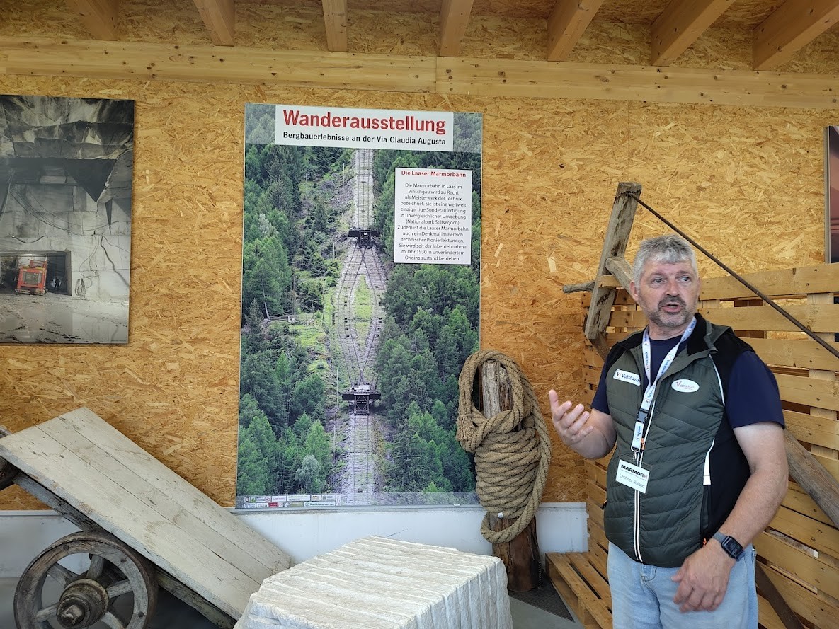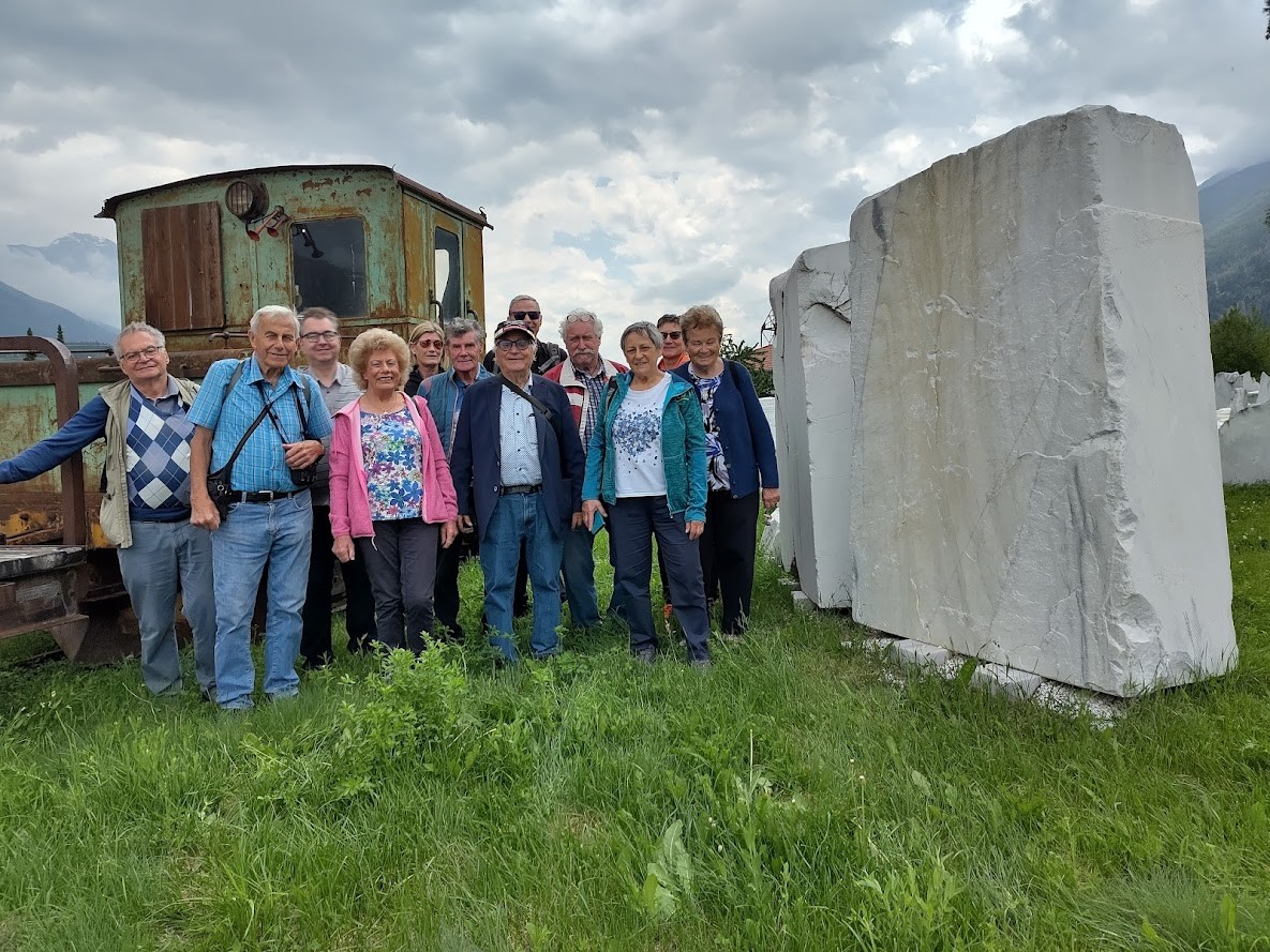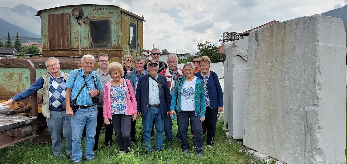 Anschließend ging es über die Schienen der Vinschgaubahn auf das Gelände des Marmorwerkes "Lasa Marmo" und der dortigen "Laaser Marmorwelt" mit dem historischen Portalkran und wertvollen Skulpturen.