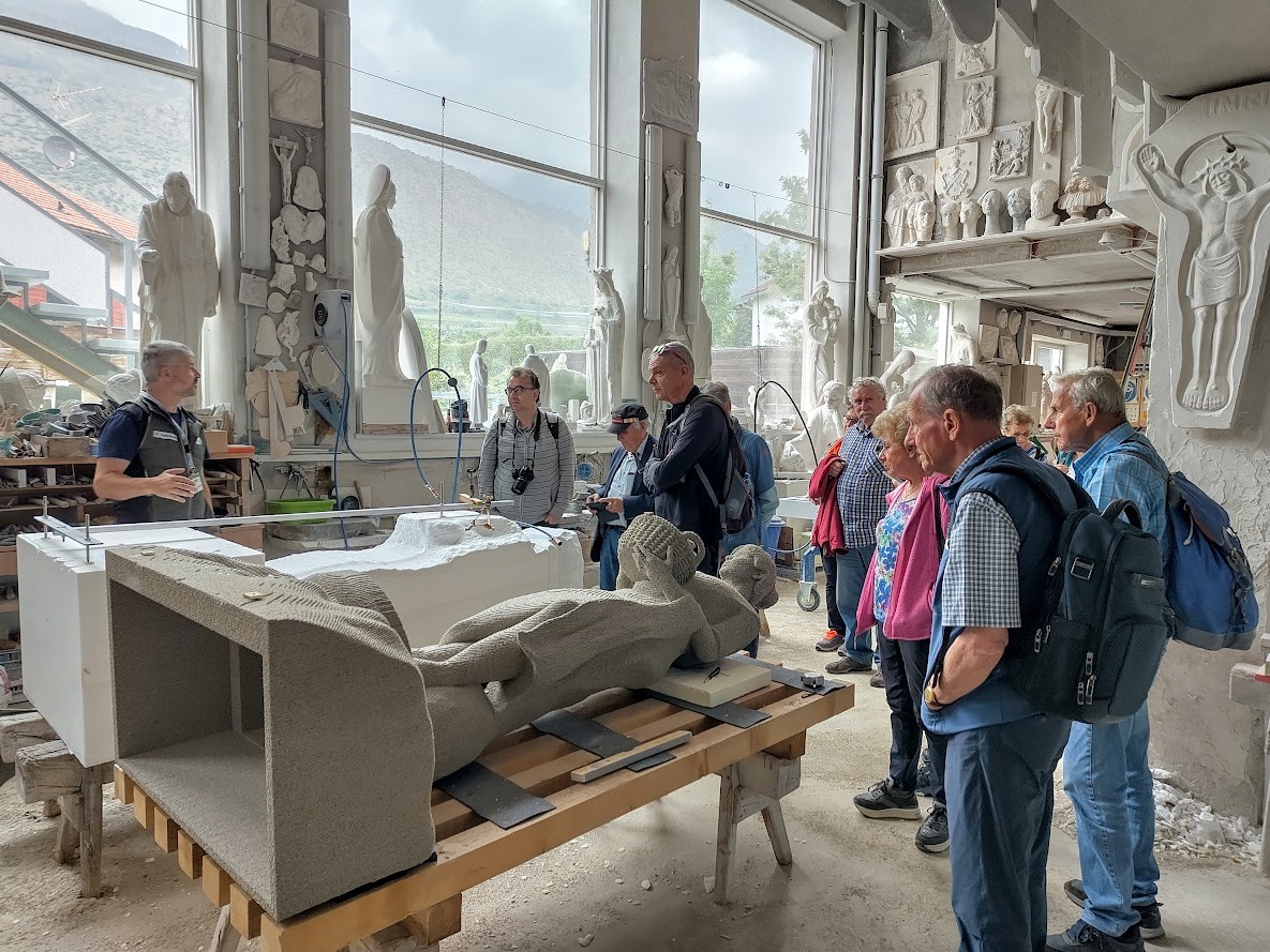 Anschließend besuchten wir den traditionsreichen Steinmetzbetrieb Josef Mayr, wo wir gezeigt bekamen, wie aus einem Block Marmor mit ausgefeilter Technik, eine reizvolle Skulptur wird.