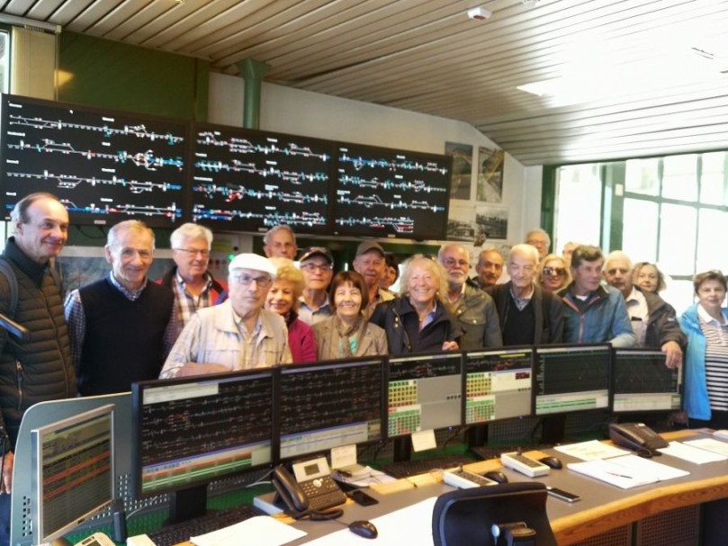 Die Gruppe in der Betriebsleitzentrale der Nonsbergbahn in Trient. Mit schwarzer Mütze: Präsident Walter Weiss.