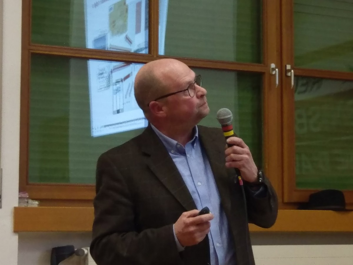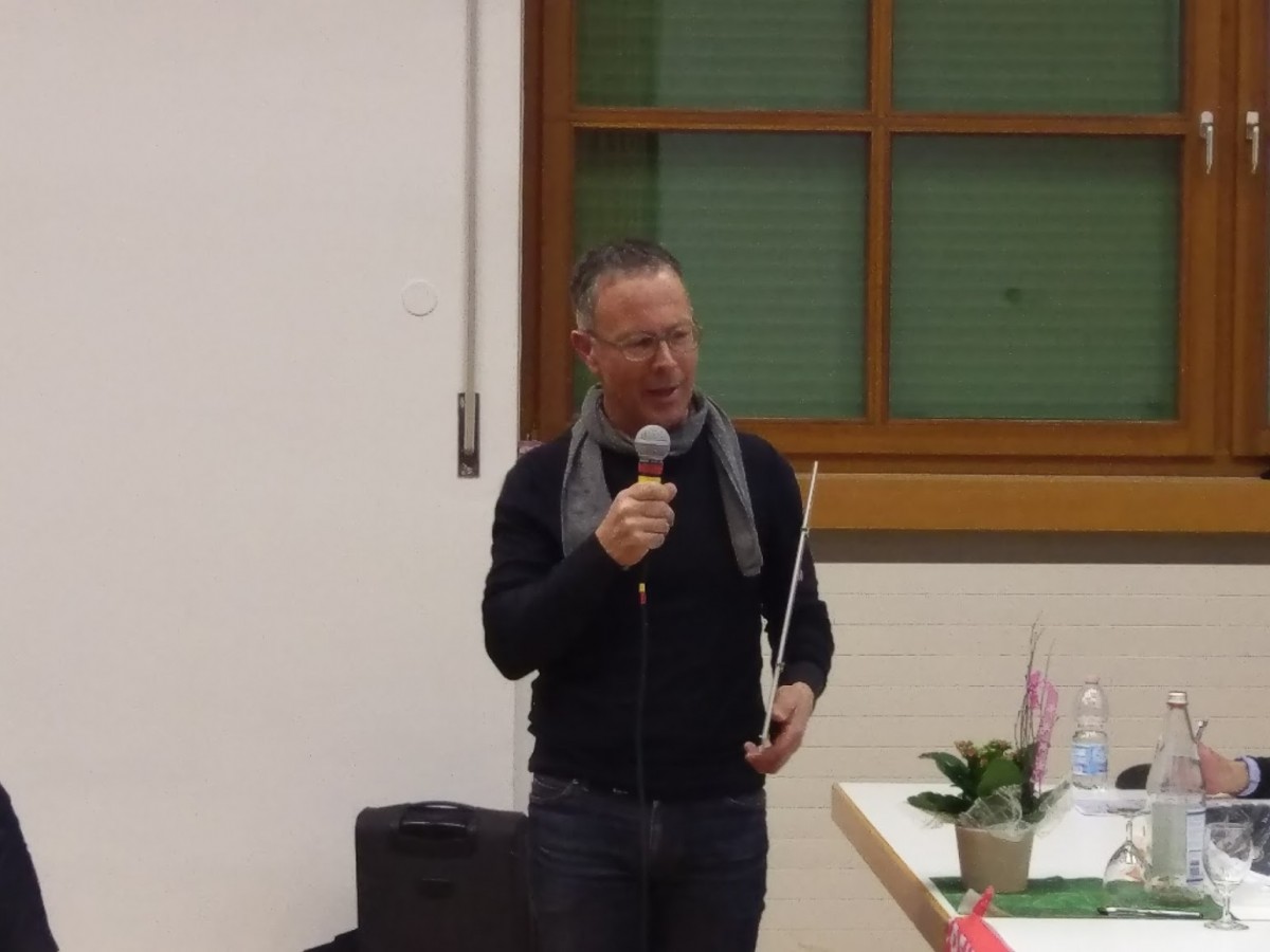 Der Generaldirektor von Trenitalia Südtirol/Trentino stellte kurz den Konzern Trenitalia vor, der mit ca. 60.000 viele Geschäftsfelder bedient, mittlerweile nicht nur in Italien, sondern in Europa und weltweit. Trenitalia Südtirol/Trentino ist praktisch ein Subunternehmen, aber mit starkem lokalen Bezug. Allein 2018 sind Investitionen in der Höhe von 8 Mrd. Euro geplant. Überraschend war, dass Trenitalia trotz niedriger Tarife eine der renabelsten Bahnen Europas ist, hatte man doch früher nur von riesigen Defiziten gehört. In der Region Trentino-Südtirol beschäftigt Trenitalia hat einen Umsatz von 57Mill. Euro. Man verfüge mitlerweile über eine sehr moderne Flotte mit 14 Flirt-Zügen und 7 Jazz-Zügen, dazu noch einige ältere, modernisierte Zuggarnituren. Das Team von Dr. Hopfinger umfasst 350 Mitarbeiter und diese sollen um weitere 70 Mitarbeiter aufgestockt werden, um für die nun dazukommenden Aufgaben, wie Zugleistungen auf der Vinschgaubahn gerüstet zu sein. Er appellierte an die Mitglieder, für diese Jobs bei Bekannten und Verwandten zu werben. Trenitalia Südtirol/Trentino sei schon lange kein rein italienischer Betrieb mehr und die deutschsprachigen Mitarbeiter seien in der Mehrheit. Er stellte auch kurz seinen Produktionsleiter Michael Nothegger vor.