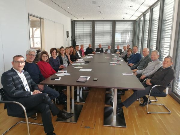 Viele Vertreter Bezirksgemeinschaften und der Gemeinden des Etschtales, des Überetsches und des Unterlandes fest sind dem Ruf des "Vereins Freunde der Eisenbahn" gefolgt und haben sich zum "Runden Tisch" in Terlan eingefunden.