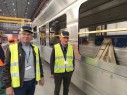 Schließlich erreichen wir jenen Fabriksteil, wo unsere Züge entstehen. Einige Waggons haben schon beachtliche Formen angenommen. Wir können auch mit Dipl.-Ing. Micheal Prader in das Innere eines Frontwagens mit Führerstand steigen. Beeindruckend ist die Fülle der Komponenten, die normalerweise hinter Verblendungen verborgen sind. Michael Prader ist mit dem Fortgang der Arbeiten und der Präzision der Ausführung sehr zufrieden und fachsimpelt mit Lokführe René Wieser über die Positionierung bestimmter Schaltelemente im Cockpit. Ab Herbst sollen Züge für Probefahrten zur Verfügung stehen, z.b. für den Eisenbahnversuchsring Velim in der Tschechei und dann für Tests in Italien und Österreich. Erster betrieblicher Einsatz ist für Fahrplanwechsel 2025 geplant. Diese Züge werden für die nächsten 20 Jahre den Bahnbetrieb in der Europaregion Tirol maßgeblich prägen.